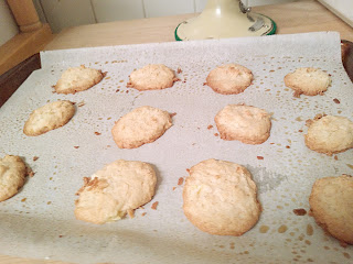 The next batch, which we baked for far less time, came out much better. They were very soft, and unexpectedly reminiscent of those coconut macaroons you can make out of leftover cake frosting. The texture was almost identical.