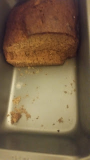 However, sharp-eyed bakers will notice that the top of this loaf is not slightly curved but looks like an upturned C. The oven got so hot every time the heating element cycled on that the sides of it baked hard before it had time to rise, while the batter in the center baked a lot more nicely (see? I have learned things in my baking class!). But at least it wasn't burnt and dead at the edges.