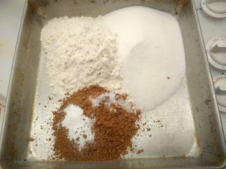 If I had a kitchen scale, I could have made a perfect and exact division of all the ingredients after I had them nicely mixed. Since I don't, let's move on to our waiting flours!